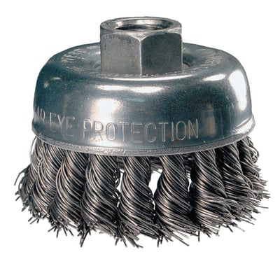 Loading product details...Mini Knot Cup Brush, 2-3/4 in Diameter, 5/8 in -11 Arbor, 0.020 in Carbon Steel Wire