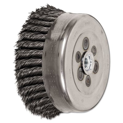 Loading product details...Standard Twist Single Row Cup Brush, 4 in dia, 5/8 in-11 Arbor, 0.023 Carbon Steel Wire