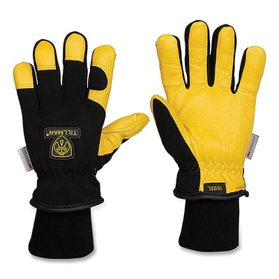 Loading product details...Leather and Spandex Winter Gloves, Deerskin, Large, Black/Tan