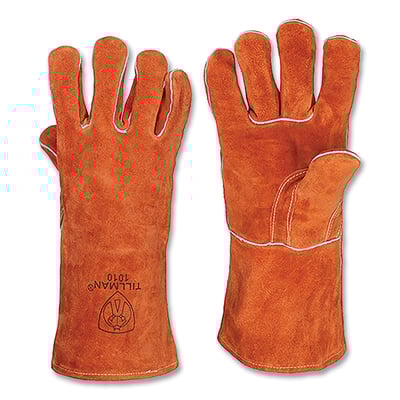 Loading product details...Stick Welding Gloves, 1010, Select Shoulder Split Cowhide Palm/BOH/Cuff, Lg, Russet, 14 in L Cuff